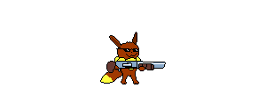 Eevee, the beloved Pokémon, is depicted in pixel art style, wielding a shotgun in a unique Pizza Tower crossover sticker.