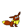 Eevee from Pizza Tower, a pixel art character with a yellow scarf and sunglasses, wiggles playfully.
