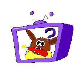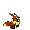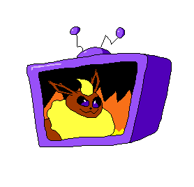 A pixel art Eevee in the frantic style of Pizza Tower, possibly resembling Flareon, displayed on a retro television screen.