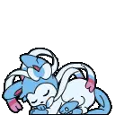 An animated sticker featuring various Eeveelutions from Pokemon, including Eevee, Jolteon, Flareon, Sylveon, and more, appearing with expressive faces.