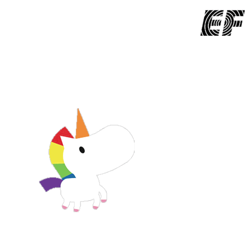 A cute EF Education First unicorn with a rainbow mane jumps happily, with a red heart floating above its head.