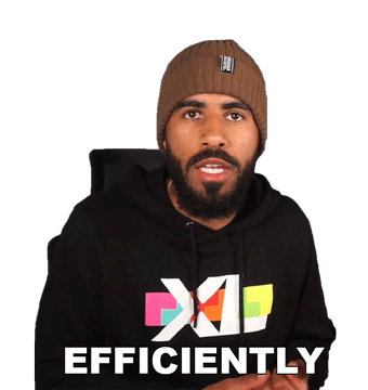 Freemedou, wearing a beanie and hoodie, gestures while the word 'EFFICIENTLY' appears, emphasizing effective action.