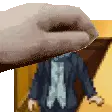 Pixel art of Egdeworth (Ace Ventura) in a red suit, arms outstretched.