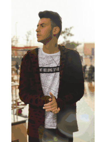A young Egyptian man, possibly a Brother, posing in various stylish outfits and settings, including outdoors and indoors with lights.