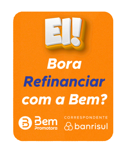 an orange sign that says ' bora refinanciar com a bem ' on it