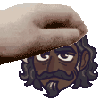 Pixel art animation of Eisen Iyer from The Kingmaker Histories getting a gentle petpet, featuring a bearded man.