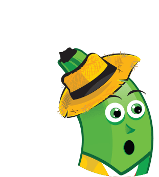 Don Platanito, the green banana character from El Carmen, wears a straw hat and shows a surprised expression.