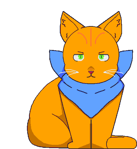 El Gato, a pixel art orange cat with green eyes and a blue scarf, sits with a serious expression.