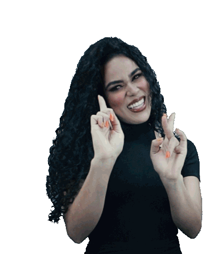 Elana from No Limite smiles brightly, making peace signs with both hands, showing her energetic and happy mood.