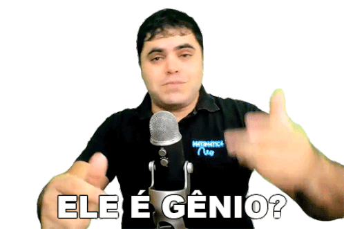 Professor Rafael Procopio from Matemática Rio asks 'Ele é Gênio?' (Is he a genius?) in this animated sticker.