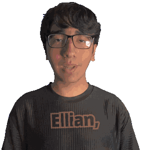 a man wearing glasses and a black shirt with the word ellian on it
