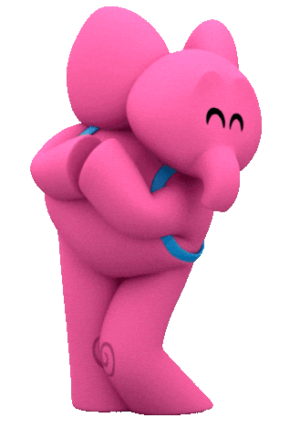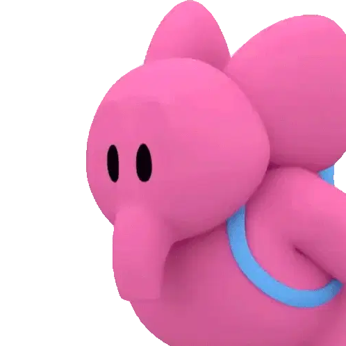 Elly, the beloved pink elephant from Pocoyo, performs a cute and polite bow with a shy expression.