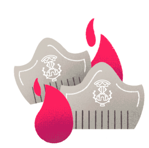 Animated sticker featuring traditional combs and flame-like elements, representing Falla Els Barris from Turís, Spain.