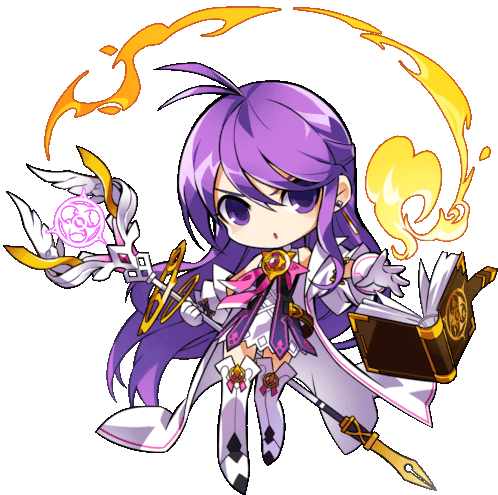 Elsword Aisha, the anime mage, casts a spell with her staff and book, surrounded by magical flames.
