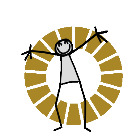 Elyx Elyxyak, the happy stick figure, spins joyfully within a golden circle, spreading positive vibes.