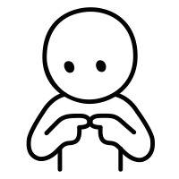 A simple stick figure with a round head and dots for eyes, pointing both hands towards its chest, conveying embarrassment.