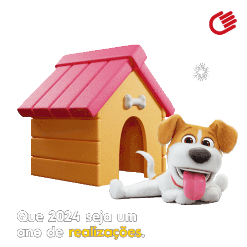An animated dog and doghouse with a New Year's wish from Embracon: 'May 2024 be a year of achievements'.