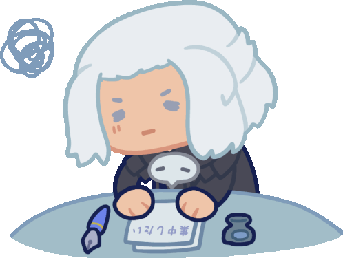Emet Selch from FFXIV, as depicted by Khaiani, struggling to focus with a visible headache, perfect for relatable moments.