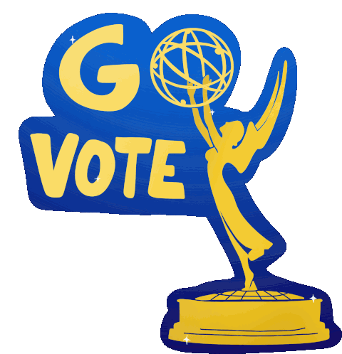 An Emmy award statue with 'And The Winner Is...' and 'Go Vote' encouraging participation in elections.