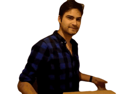 Un hombre joven sonríe emocionado mientras sostiene un paquete de cartón, mostrando su alegría por la entrega.