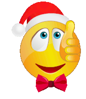 A cheerful yellow emoji wearing a Santa hat and red bow tie gives a positive thumbs up gesture.