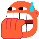An animated emoji showing fear, biting its fist with a sweat drop, expressing anxiety or stress.