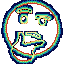 A pixelated, glitching emoji face pondering or thinking, shifting between circular and angular forms with vibrant colors.