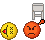An angry orange pixel art emoji violently hits a yellow pixel art emoji, which appears dead or defeated, with a chair.