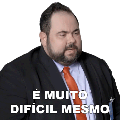 Fábio De Luca, from Porta Dos Fundos, expresses that something is 'É muito Difíicil Memso' (It's really difficult). His expression is thoughtful and resigned.