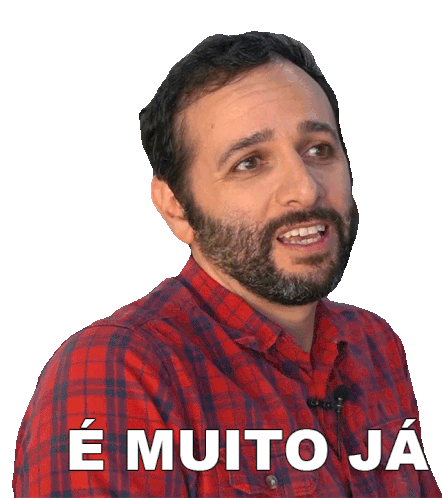 Iberê Thenório from Manual do Mundo, looking surprised or overwhelmed, with the Portuguese phrase 'É MUITO JÁ' (It's too much already).