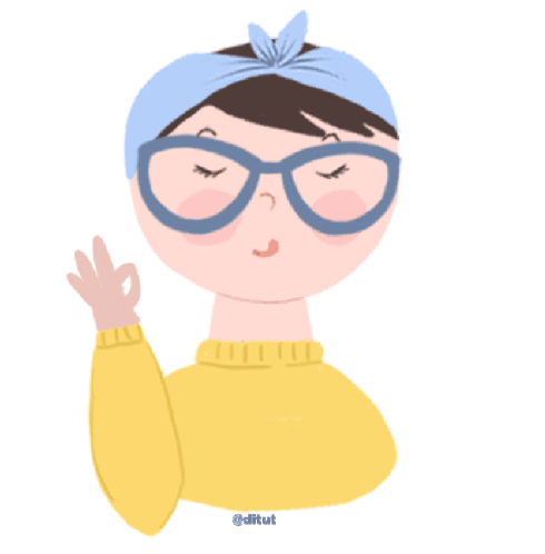 An adorable illustrated girl with glasses and a headscarf gives an 'OK' sign, with 'Enak Delicious!' appearing.