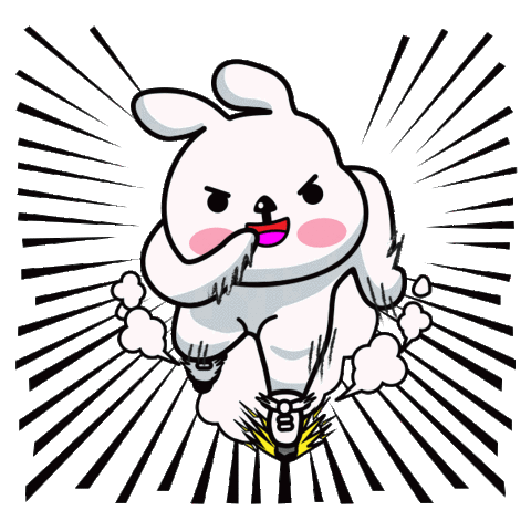 An energetic cartoon rabbit running with a stopwatch, exclaiming "You're late!"