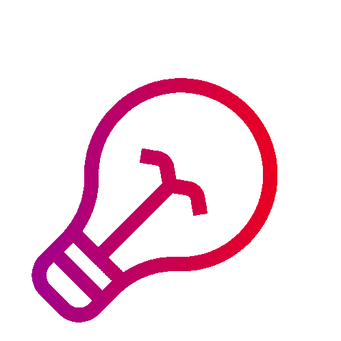 Animated light bulb icon, glowing with purple and red gradient, symbolizing energy, ideas, and innovation.