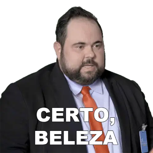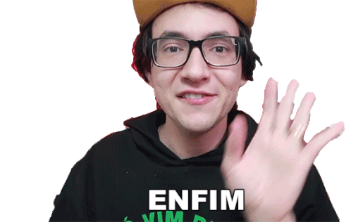 Gabriel Dearo smiles and says 'Enfim' (Anyway/Finally), expressing a sense of conclusion or moving on.