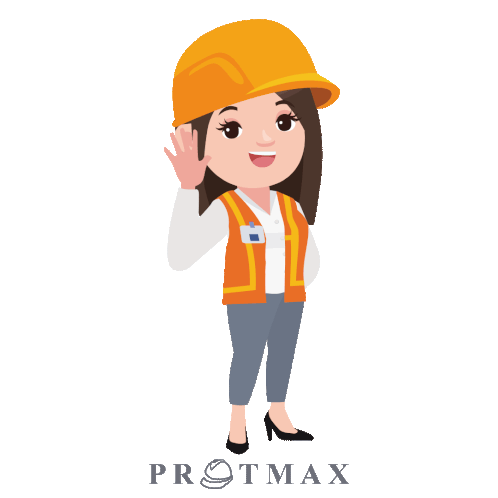 A cheerful cartoon female engineer in a hard hat and safety glasses, celebrating 'Dia do Engenheiro' with 'PROTMAX'.