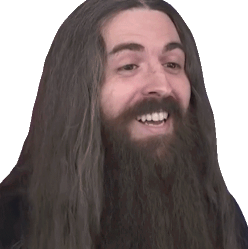 Samus Paulicelli smiles and bobs his head, clearly enjoying the music. His long hair and beard frame his joyful expression.