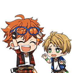 Subaru Akehoshi excitedly shows off his glasses, while Makoto Yuuki looks on in surprise in this Ensemble Stars sticker.