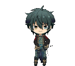 Ensemble Stars chibi character animated, wielding a sword with a dynamic pose and a koi design, associated with Valkyrie.