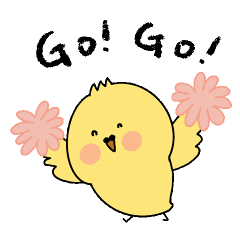 An adorable, enthusiastic chick character cheers with flapping wings, radiating positive energy and encouragement.