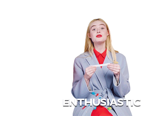 Elle Fanning shows an enthusiastic reaction, holding a strip of paper with a bright, energetic expression.