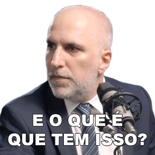 Antonio Tabet, in a suit, questions 'E o que é que tem isso?' (What's the big deal?) with a skeptical look.