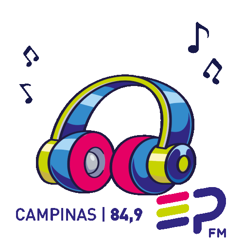 a colorful logo for campinas 84.9 fm with headphones and music notes