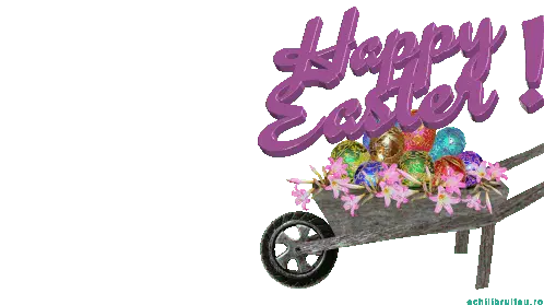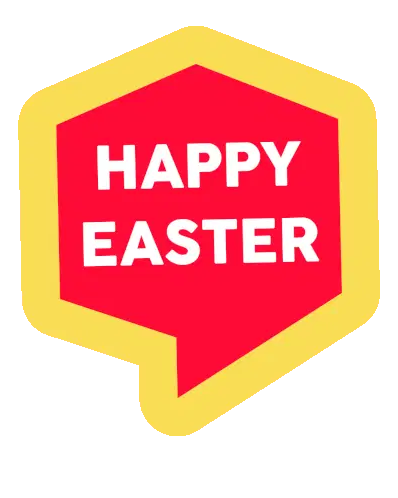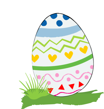 A colorful, decorated Easter egg with hearts and patterns gently sways in green grass, perfect for Easter greetings.