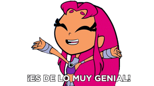 Starfire from Teen Titans Go! expresses excitement with the phrase '¡Es de lo muy genial!' (It's so cool!).