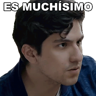a close up of a man 's face with the words es muchisimo written on it