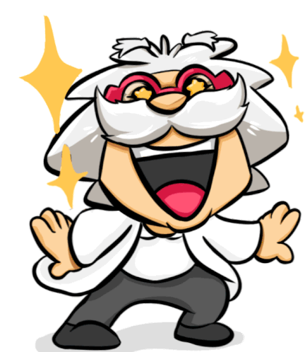 Esco Einesco, the excited scientist, beams with amazement, stars in his eyes and around him, expressing pure joy.