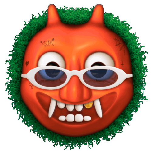 Eske Off The Meds devil head sticker, featuring a red horned face with white sunglasses, fangs, and tattoos.
