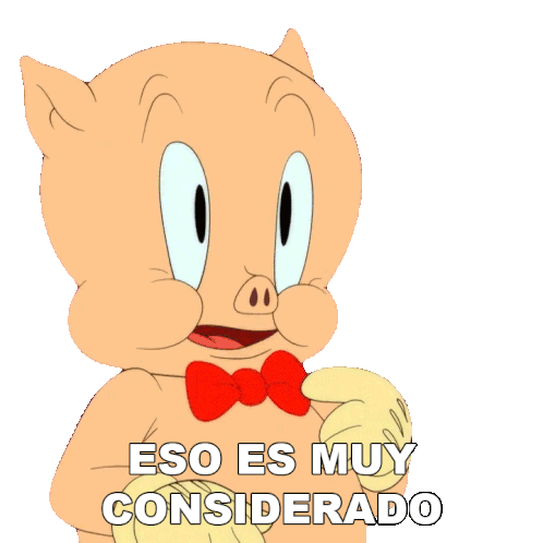 Porky Pig expresses gratitude with the phrase 'Eso Es Muy Considerado' (That Is Very Considerate), showing appreciation.