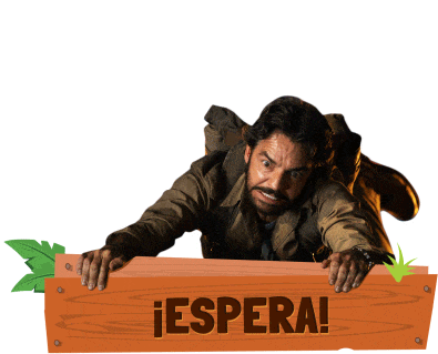 Eugenio Derbez as Alejandro Gutierrez from the Dora movie, urgently exclaiming '¡Espera!' while holding onto a plank.