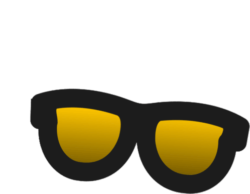 An animated sticker featuring stylish black Espetto sunglasses with shiny golden lenses, perfect for a cool vibe.